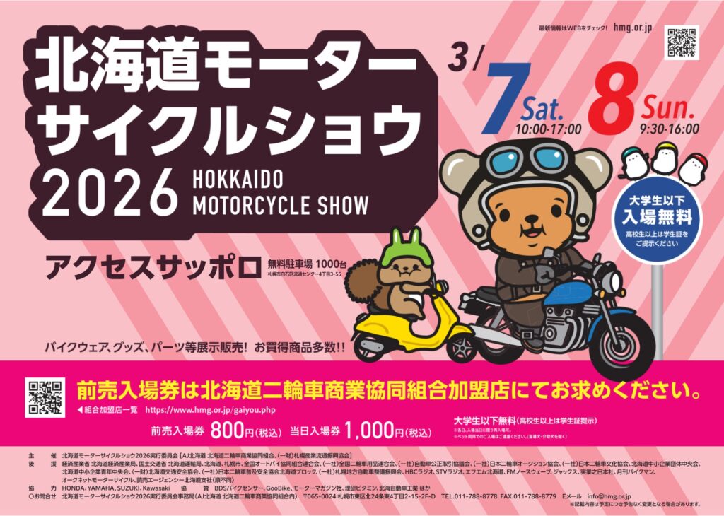 ※前売券は、全道のAJ北海道 北海道二輪車商業協同組合加盟店ほか